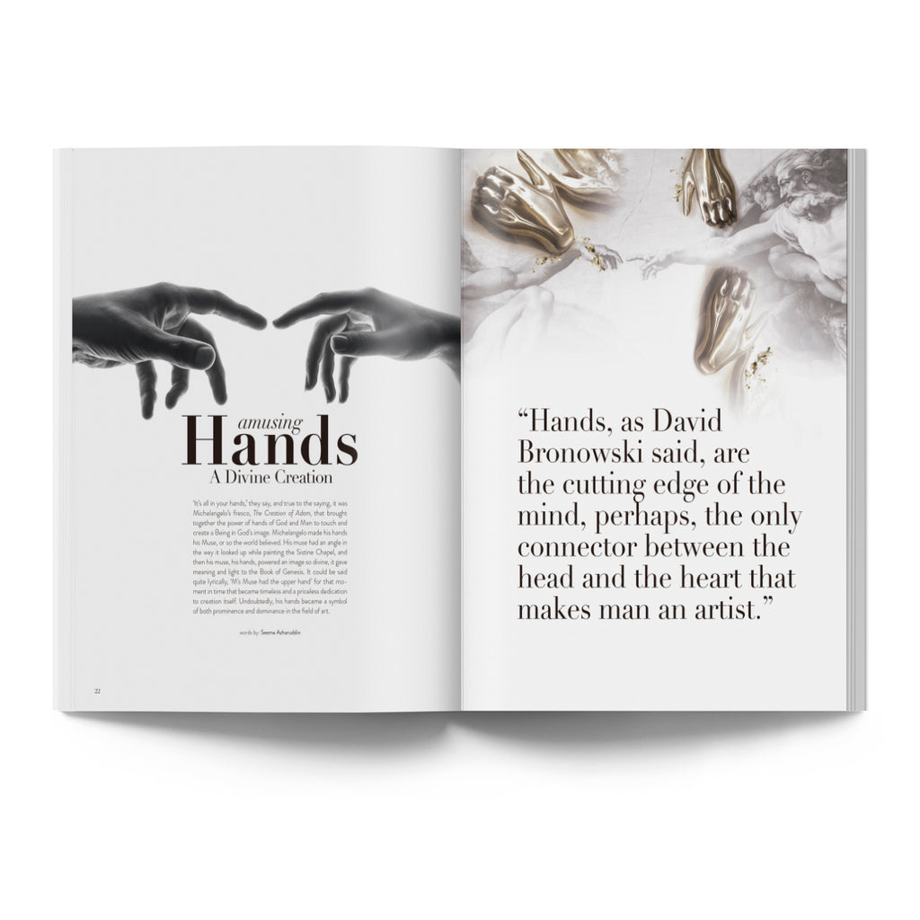 First, the touch of the hand, and the attached mind—from the stunning craftsmanship of our Cover feature couture master João Rôlo, Our Latest Obsession—plumasserie artist Nelly Saunier, and the Innovative Floral Art of JaeSuk Kim, to the story of Wearable Art and a beautiful ode to all mighty Hands. Among the pages, you will also find the creativity of top interior designers like Andre’ Jordan Hilton, Sabrina Monte-Carlo, Nina Magon and so many more. Imagine all your family and friends in a stunning gathering space in the French Riviera, Delhi, Long Island, Riyad, Egypt, or Saipan. Meet the women of Fendi and other top female associations and voices. Talk about the beauty of sex and diversity with us! Discover some of our favorite human-inspired decor and brands we love. And hear what we have to say about treading lightly on Mother Earth by Traveling With Purpose.