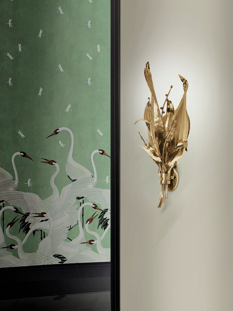 The intricate petals and stems of the Botanica sconce create a whimsical seduction reminiscent of an enchanted fairytale.