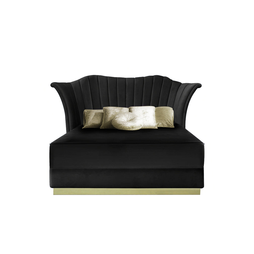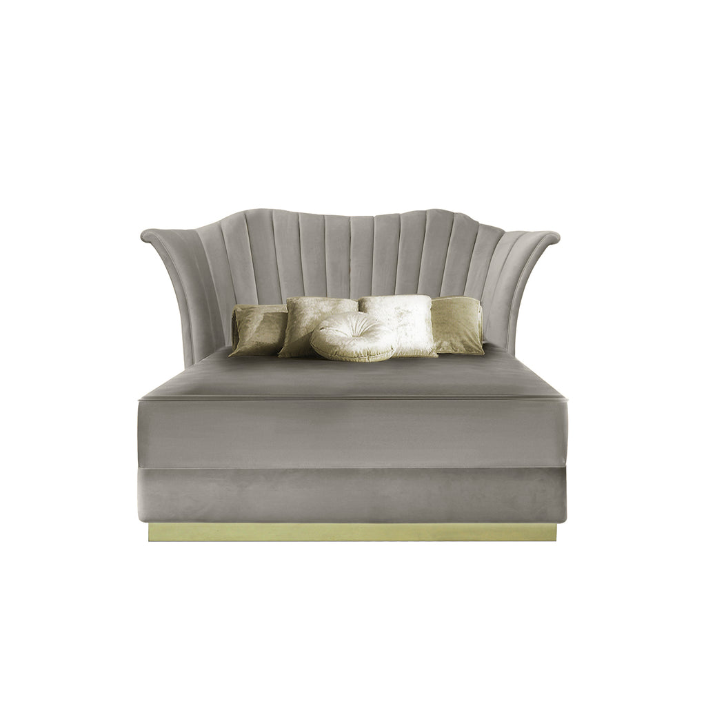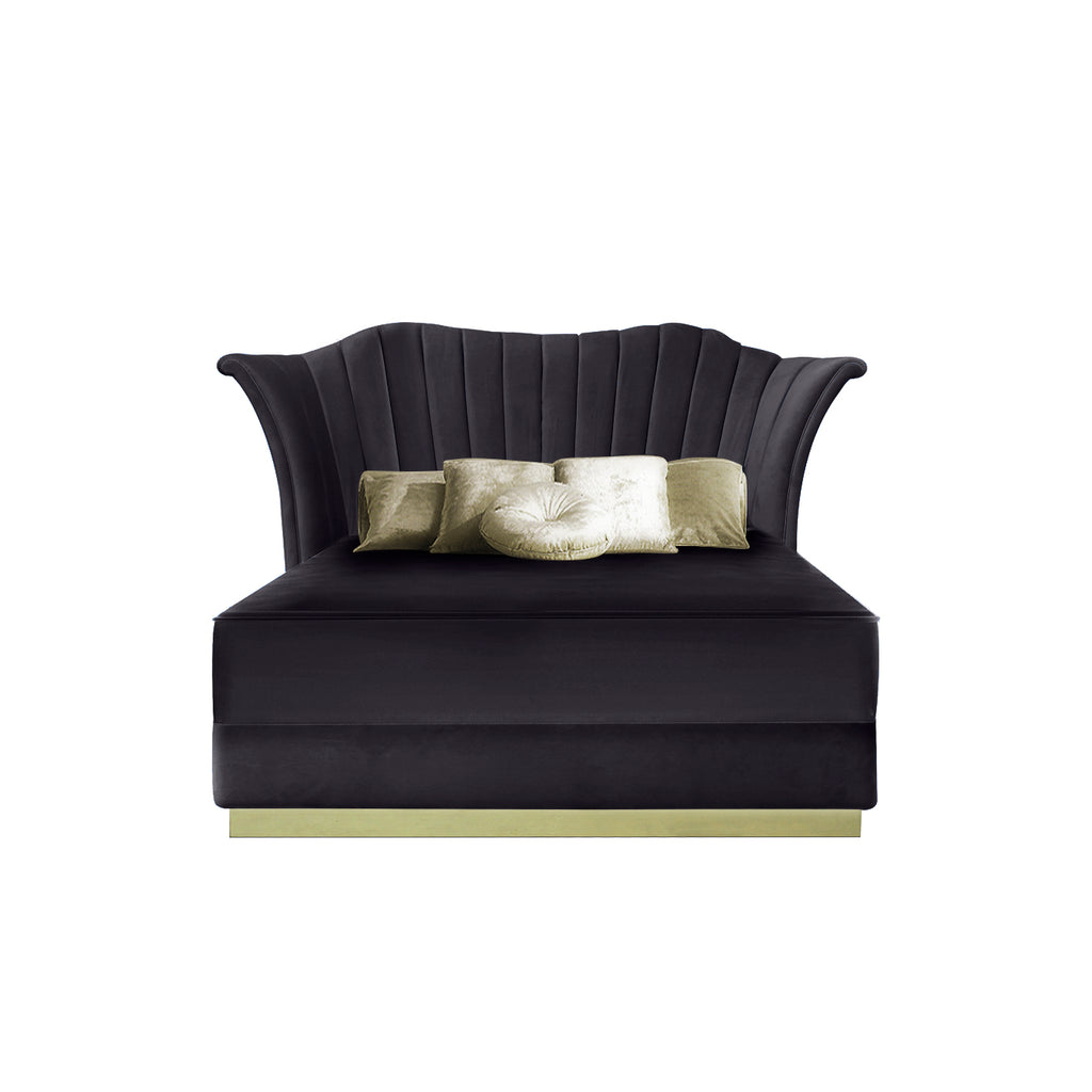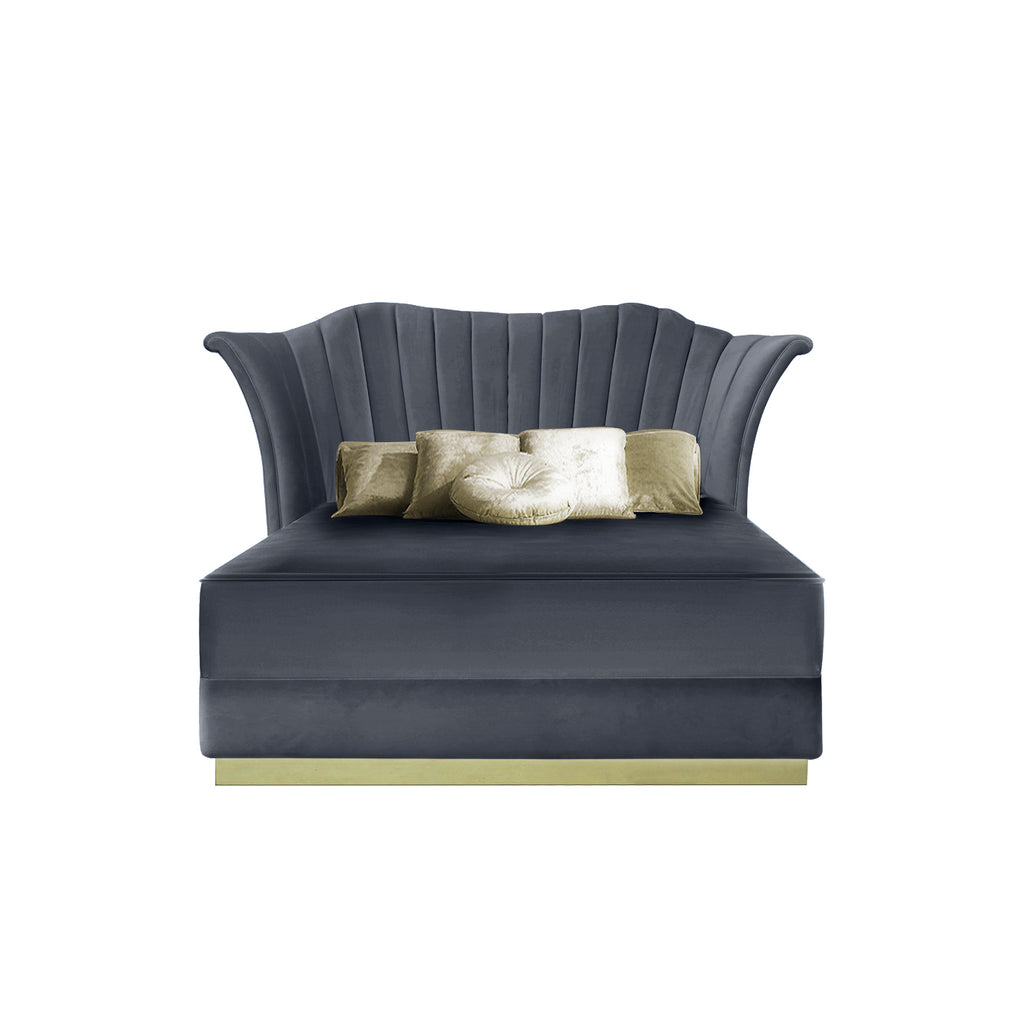 Flirty and unpredictable like a modern woman, the Caprichosa voluptuous bed’s design mimics a woman’s most desirable curves. Fitted like a little black dress in delicious upholstery fabric, a striking metal band hugs the base of her curvaceous body.