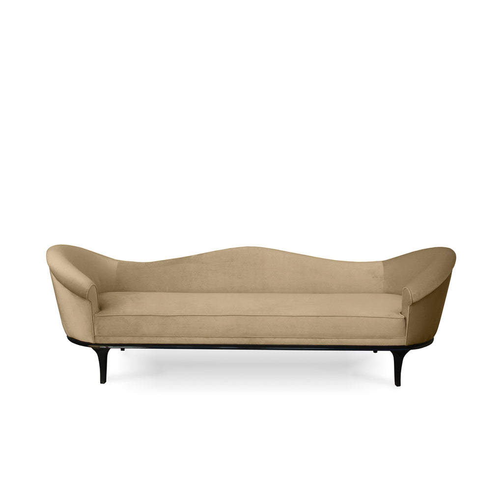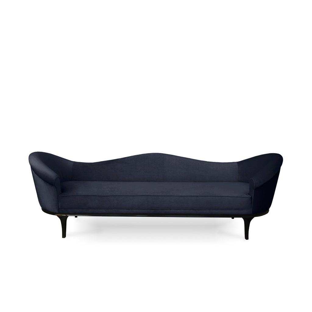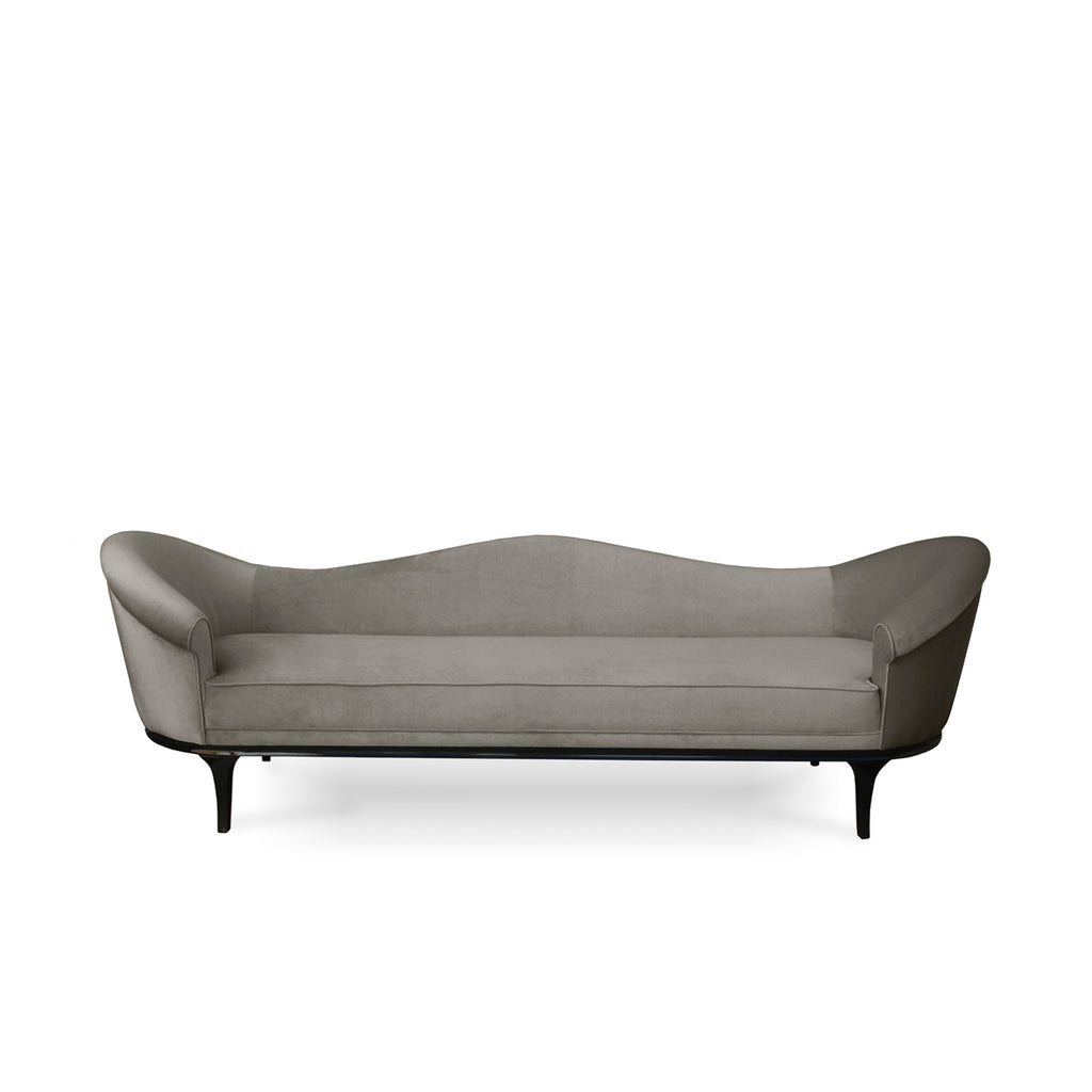 A tribute to Parisian Femininity. The vibe is flirty, a little delicate, ever so slightly vintage. Fully upholstered tight back sofa with an elegant lacquered band leading to a sleek and elegant foot.