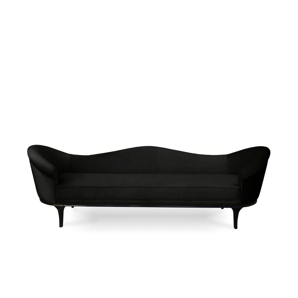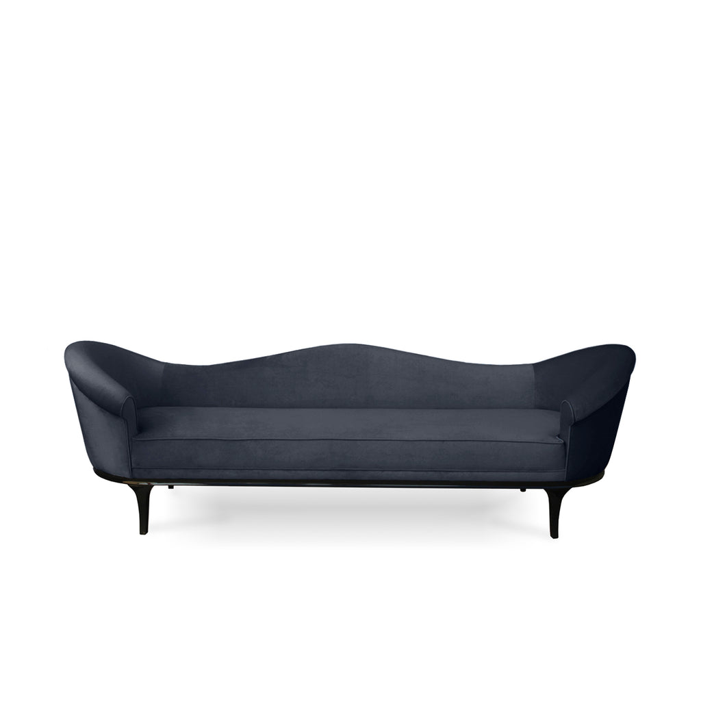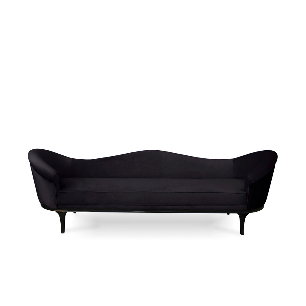 A tribute to Parisian Femininity. The vibe is flirty, a little delicate, ever so slightly vintage. Fully upholstered tight back sofa with an elegant lacquered band leading to a sleek and elegant foot.
