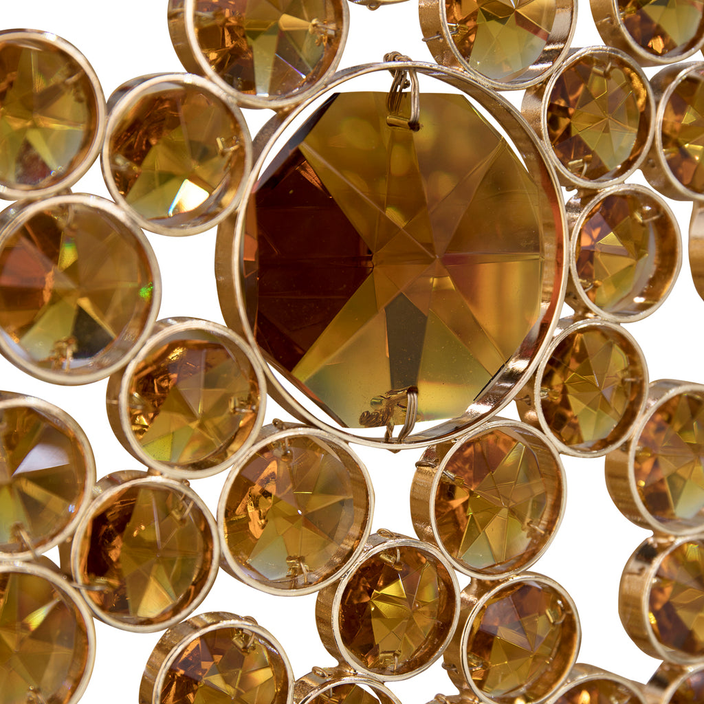 The elegant silhouette of this chandelier takes its brilliance from the skillful application of the crystal. The eternal circles are individually wrapped in brass and placed with astonishing attention to detail. The end result is an extraordinary source of light.