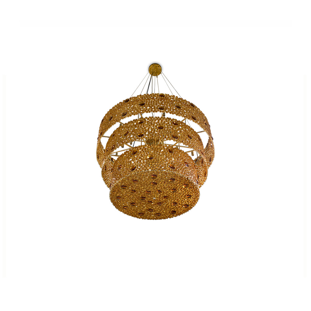 The elegant silhouette of this sculpture takes its brilliance from the skillful application of the glass. The eternal circles are individually wrapped in gleaming metal and placed with astonishing attention to detail. The end result is an extraordinary source of light.