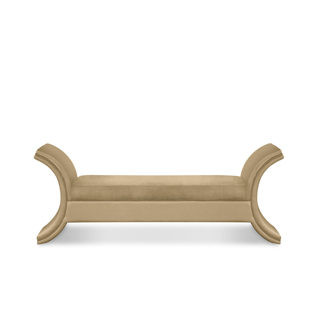 It is hard to miss that stylish radiance the glows around the Luna bench. The striking, fully upholstered design is completed by two crescent moons that serve as arms on either side of her long body. Her celestial allure will leave you searching for her among the stars.