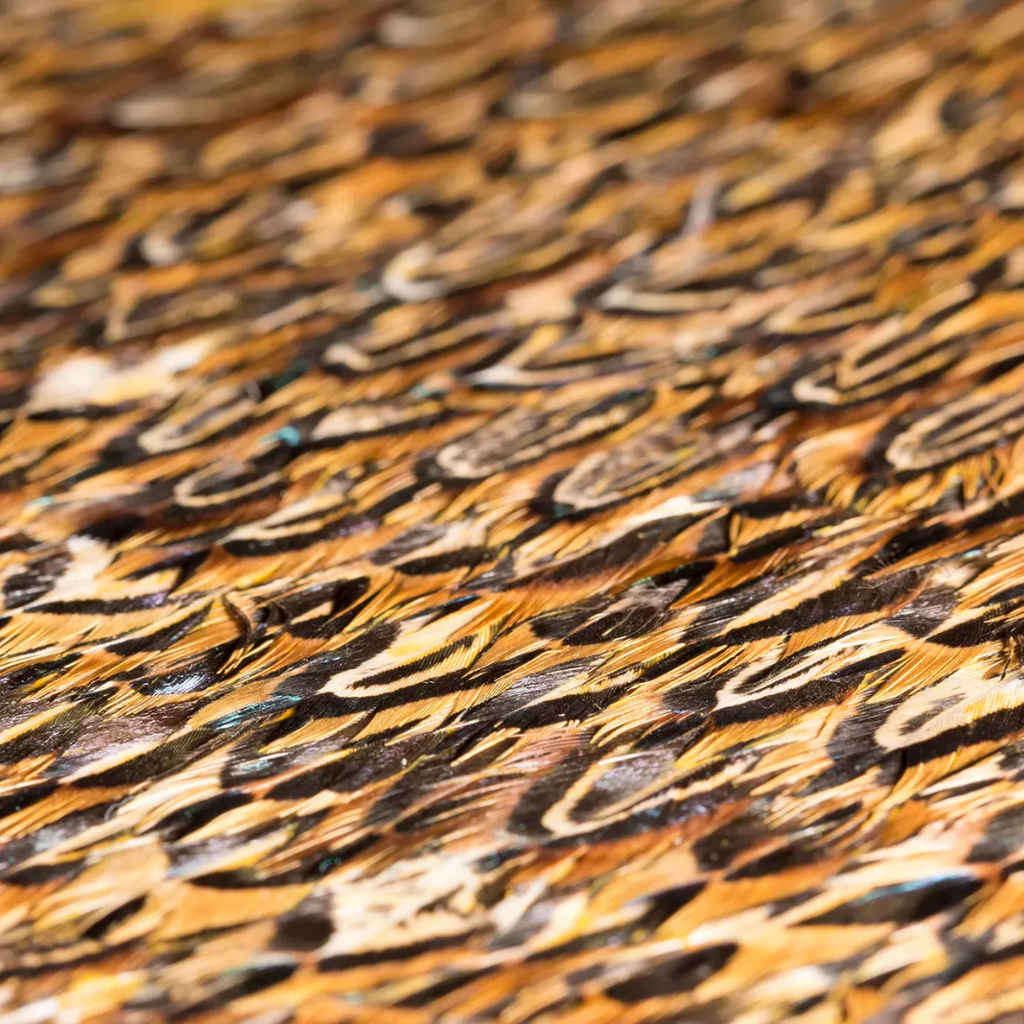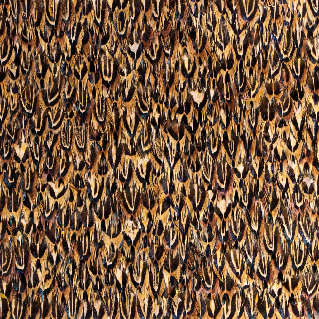 Petite quail inspired black and caramel natural feathers create an intriguing small scale patterned appearance in this delicate wallpaper.