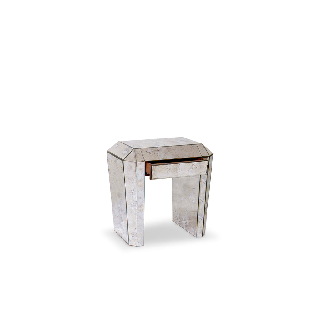 The provocatively vintage Tamara console drips with enough Art Deco decadence to transport you back to the glamour of the Roaring Twenties. Her frame’s strong geometric lines are coupled with luxurious and alluring mirror panels and two drawers.