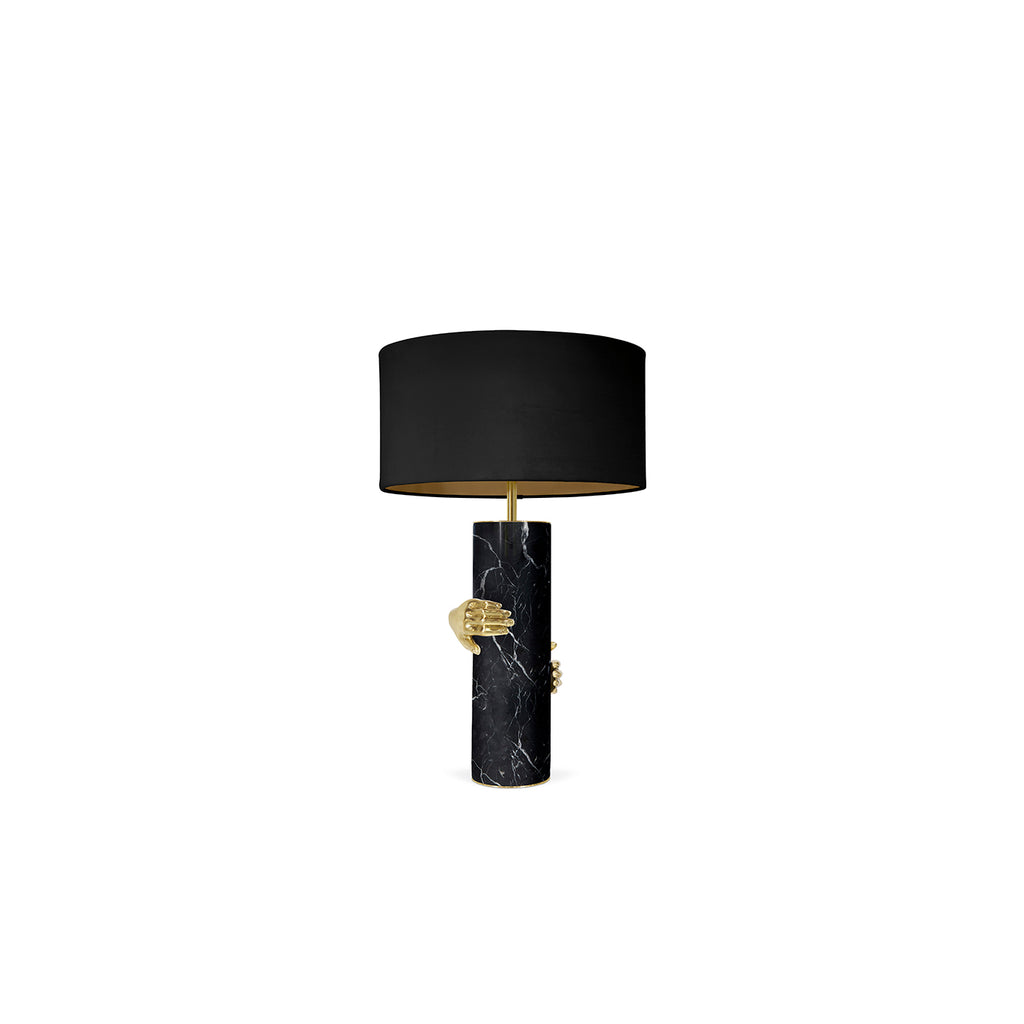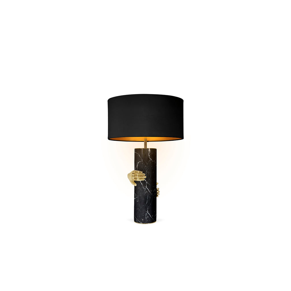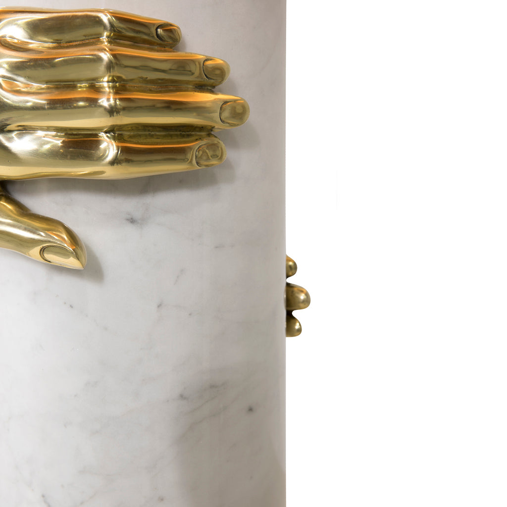 Seeking retribution, she fights to take back what is rightfully hers. Cast brass hands grasp the Vengeance lamp’s marble column structure embodying her impassioned struggle.